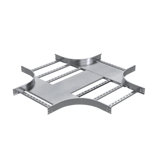 Применяется для монтажа пересечения трасс в горизонтальной плоскости. Его конструктив обеспечивает плавный поворот и предупреждает повреждение кабеля при прокладке. Х-образный ответвитель R-300 предназначен для лотков высотой 80 мм и шириной 200 мм. Для соединения секций и аксессуаров лестничного лотка необходимо использовать  соединительные пластины  IGH80, а также винты CM010612INOX, гайки CM110600INOX и шайбы.